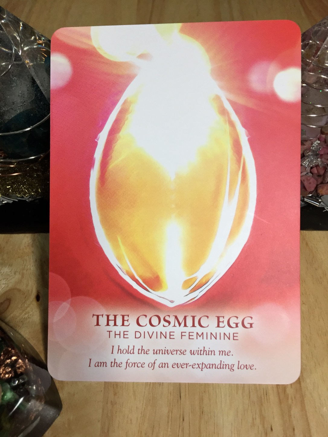 Even in the midst of the chaos that abounds on earth right now, the Cosmic Egg is a reminder that all is well and perfect in divine creation. Do not worry that the chaos will not end, it will, it is part of the birthing process. Pushing out all that is not for the highest good.