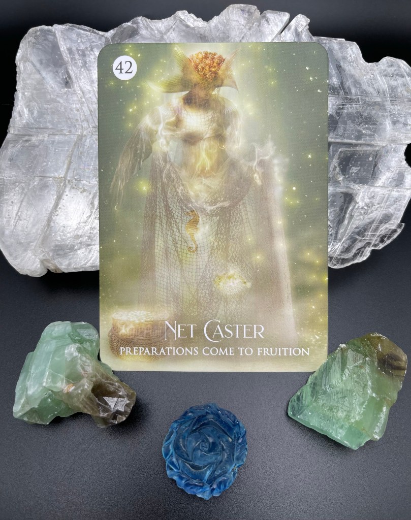 Net Caster comes through today to remind you to cast your net wide and to have patience. Every fisher knows these things, you too are a net caster, only instead of fish, you are casting for opportunities, miracles, dreams. Just as the fisher knows to cast as wide as possible, you must do the same. Remember, you must not scare the fish away! No self sabotaging, that would be like cutting a hole in your net, even as you throw it, so that your net is empty when you pull it back in.