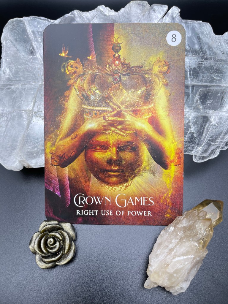 Whether or not you realize it, Crown Games are going on all around you. You may be participating consciously or unconsciously. You are being guided to turn your eye to power and how you are interacting with it. When it comes to power you are either standing in your sovereignty and aligning with the Divine, or your ego is in control and using power for its purpose. There is no judgement, just bring your awareness to it, and then you can decide consciously how you want to use power.